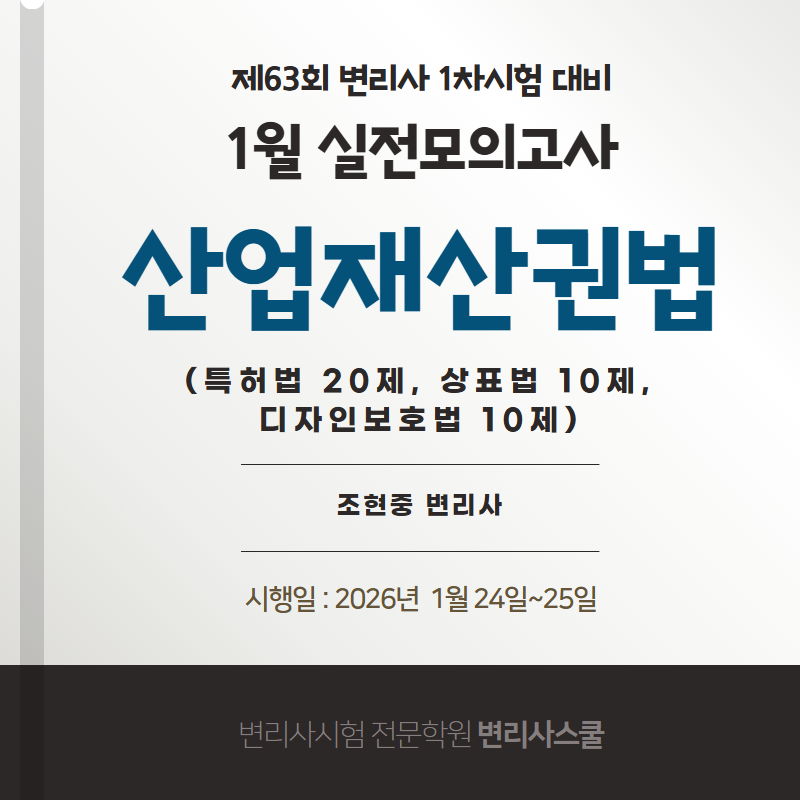 본 강좌는 '변리사스쿨 2026년 1차시험 대비 The Premium 1월 실전모의고사 산업재산권법(문제지+해설지)' 교재와 연계되는 강의입니다.