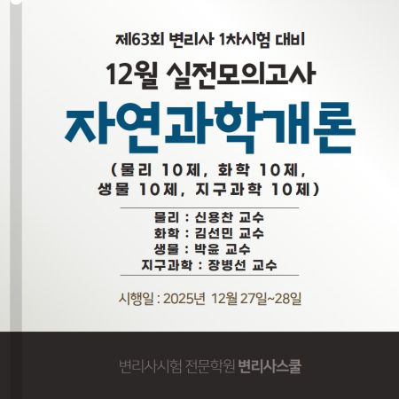 변리사스쿨 2026년 1차시험 대비 The Premium 12월 실전모의고사 자연과학개론(문제지+해설지)