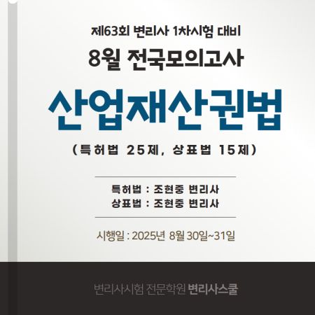 변리사스쿨 2026년 1차시험 대비 The Premium 8월 실전모의고사 산업재산권법(문제지+해설지)