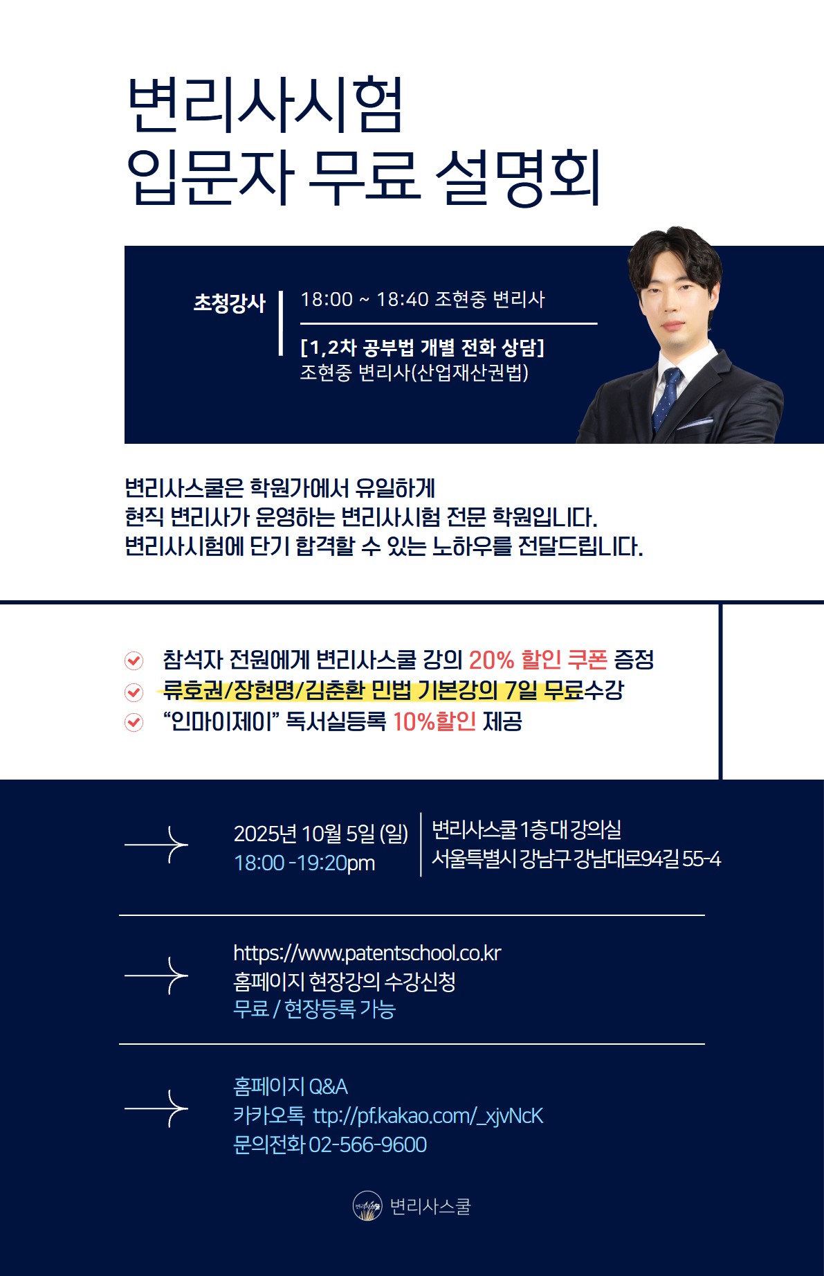 [변리사 입문] 변리사시험 입문자 설명회 (10월 5일 일요일) NEW