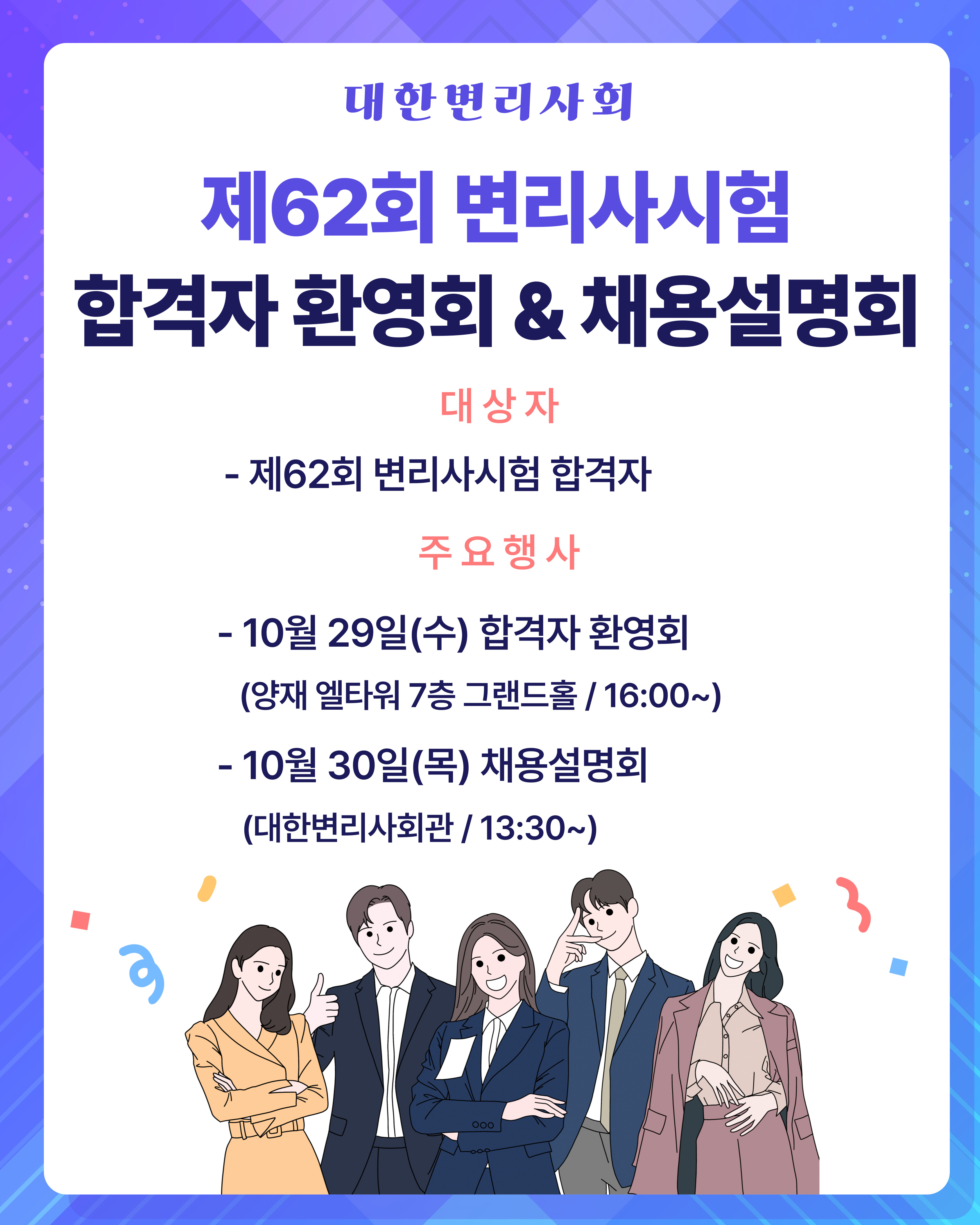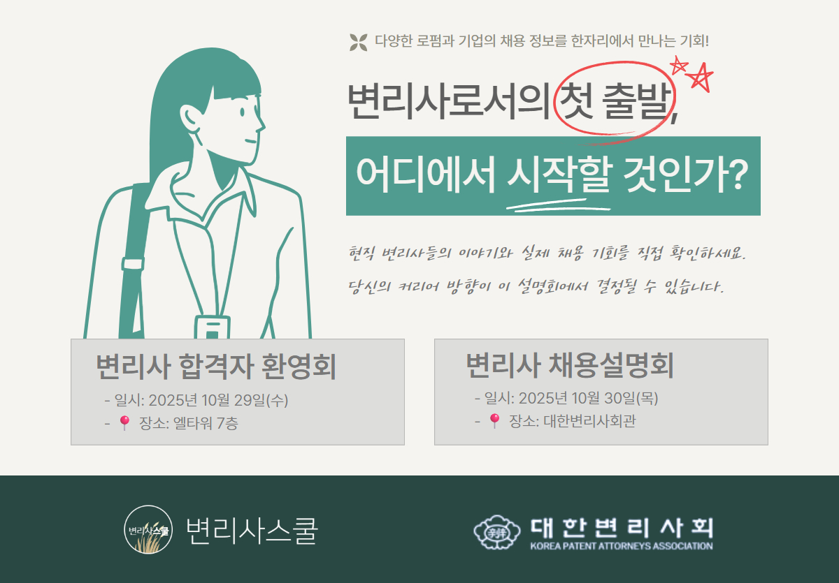 [변리사스쿨] 제62회 변리사시험 합격자 환영회 & 채용설명회 (주최 : 대한변리사회) NEW